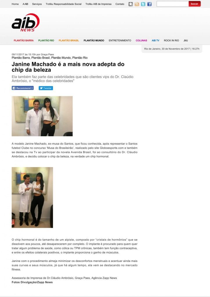 Reportagem Portal AIB News: Janine machado é a mais nova adepta do Implante Hormonal.