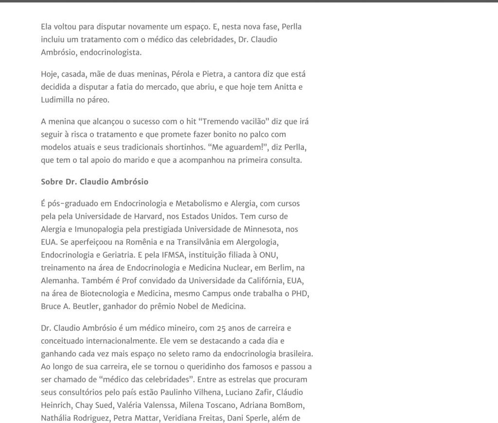 Reportagem Portal BarraZine: Casada e mãe de duas meninas, cantora Perlla volta aos palcos após tratamento