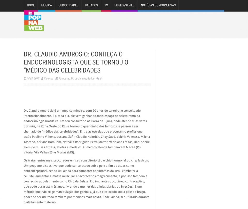Reportagem Portal É Pop na Web: Dr. Claudio Ambrosio – Conheça o endocrinologista que se tornou o “Médico das celebridades”