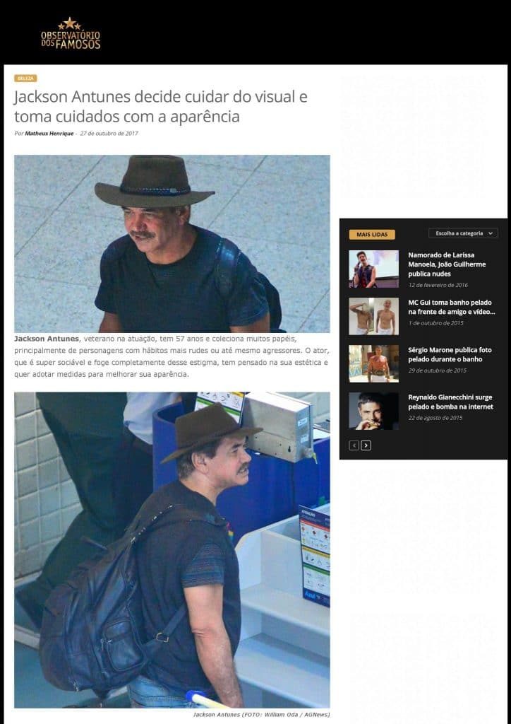 Reportagem Portal Observatório dos Famosos: Jackson Antunes decide cuidar do visual e toma cuidados com a aparência