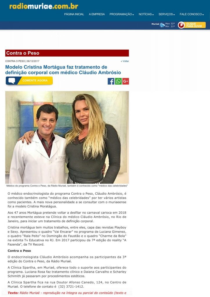 Reportagem Radio Muriaé: Modelo Cristina Mortágua faz tratamento de definição corporal com médico Claudio Ambrosio.